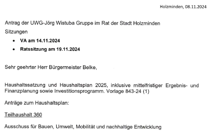die Anträge zum Haushaltsplan für die Ratssitzung am 19.11.2024